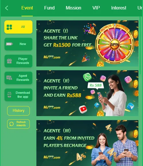 Invite friends to join MJ77 using your referral code. When they register and play, you earn commissions or bonus rewards. This is a great way to earn without playing .